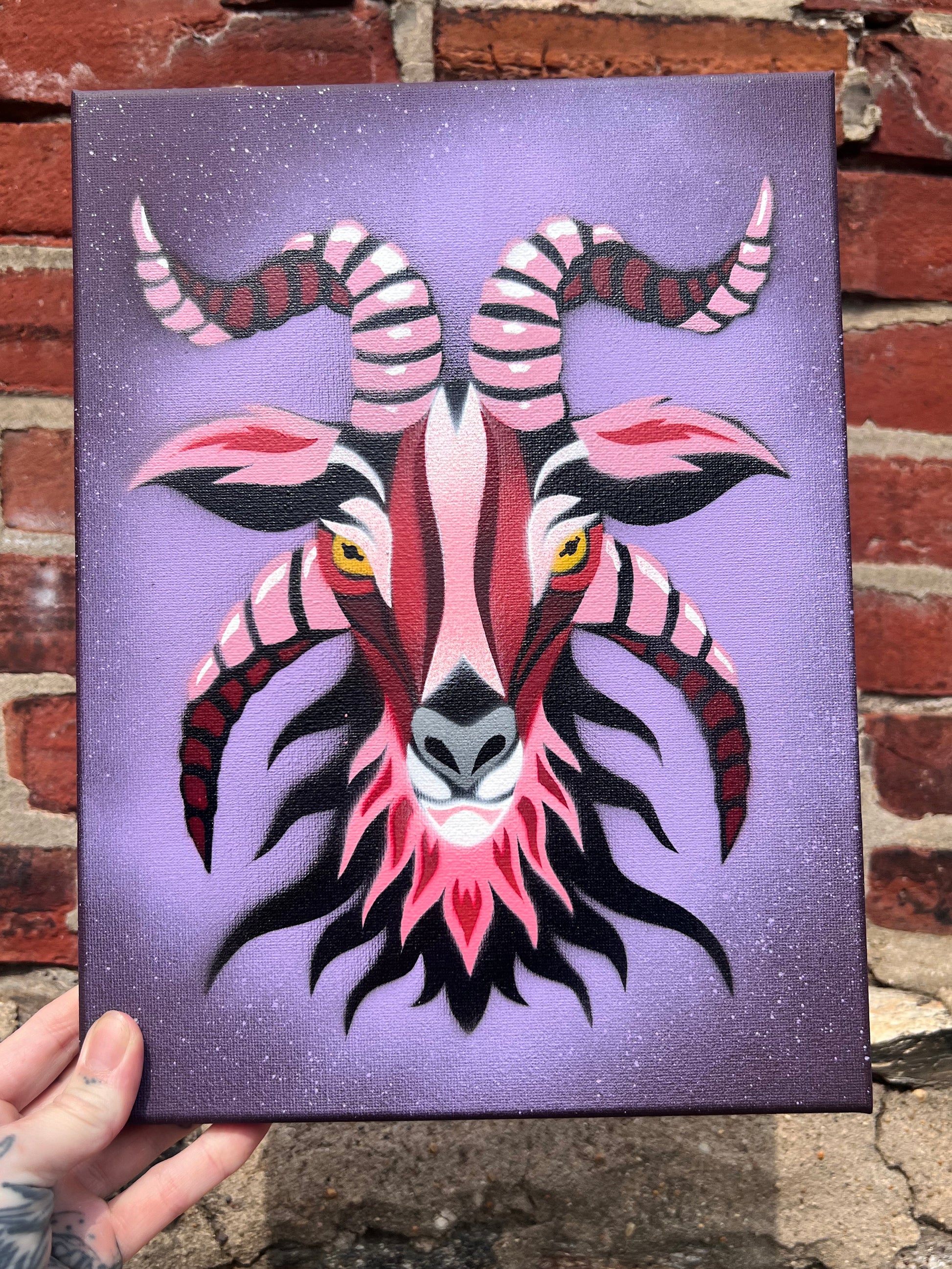 Purple Goat Stencil #1 on 9"x12" Canvas