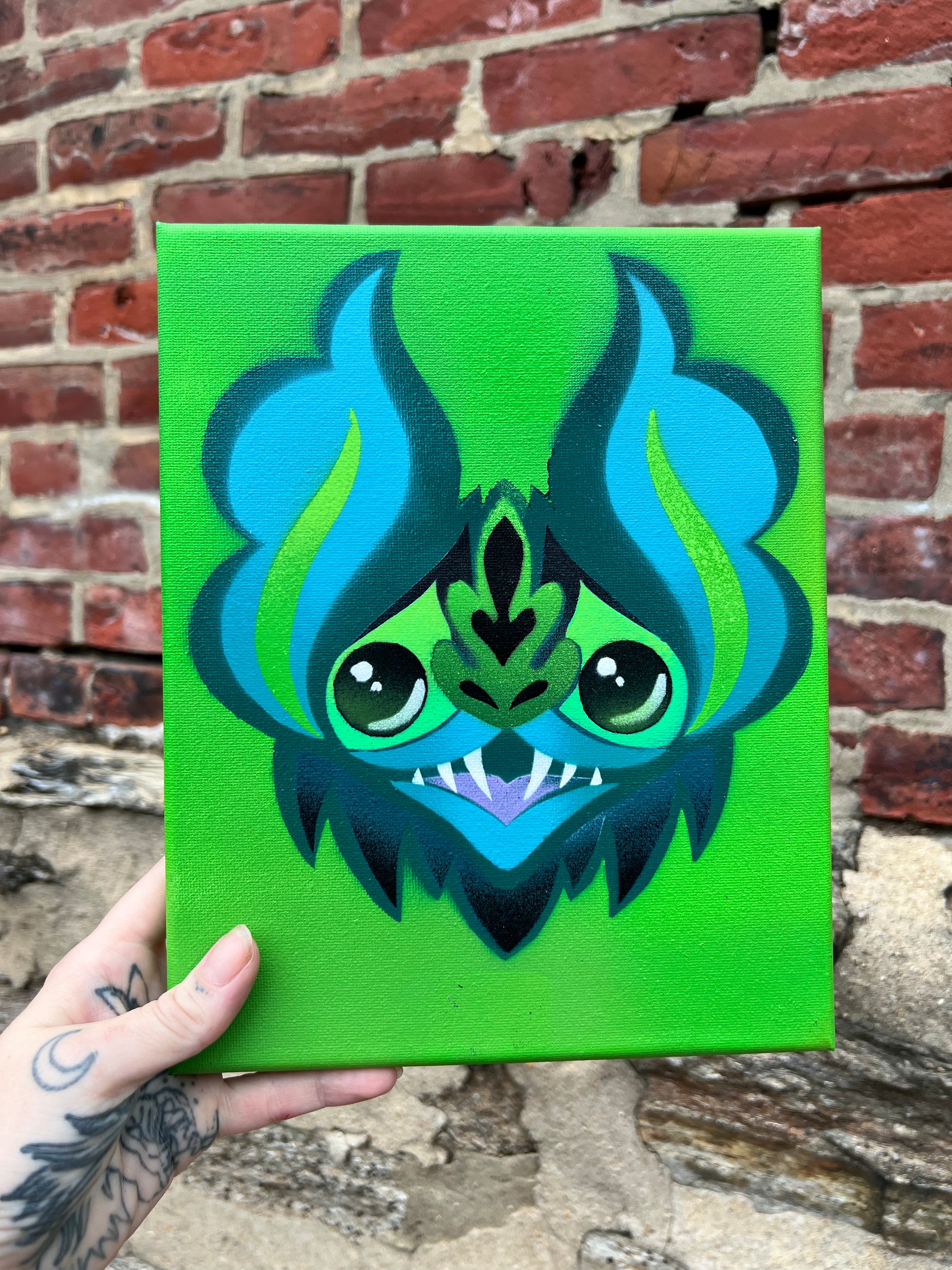 Green Bat Stencil on Canvas 8 " x 10" (Copy)